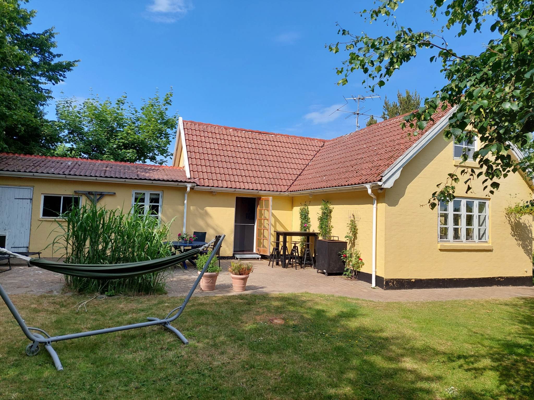 Huset fremstår ligeledes velholdt udendørs med en flot, skagensgul farve, sprossede vinduer og andre charmerende detaljer, der fuldender den landlige æstetik. Omkring hjemmet finder I også masser af mulighed for ugeneret udeliv, for her får I altså to store, solrige terrasser, hvor I kan indrette adskillige hyggekroge, der prydes af grøn beplantning. På matriklen er der ydermere etableret en lukket garage, mens huset også rummer et integreret hobbyrum eller værksted med egen indgang.
