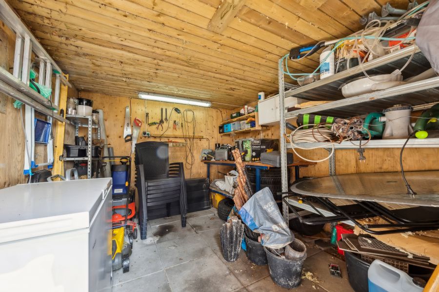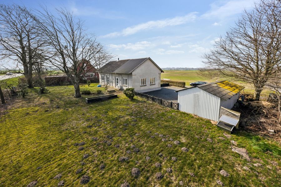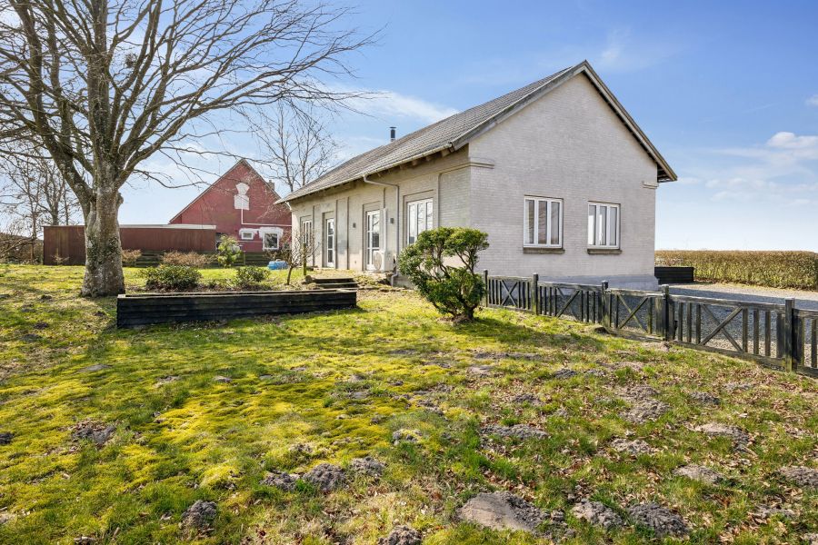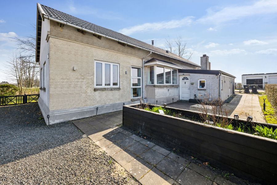 På en 1.229 kvadratmeter stor grund ligger den gråpudsede ejendom, og her er noget for enhver smag; den solrige baghave med plads til blomster, bær og højbede, muligheder for at pusle med hobbyprojekter henne i værkstedet, eller måske vil du hellere slappe af henne på fliseterrassen, mens børnene spiller fodbold på græsplænen?