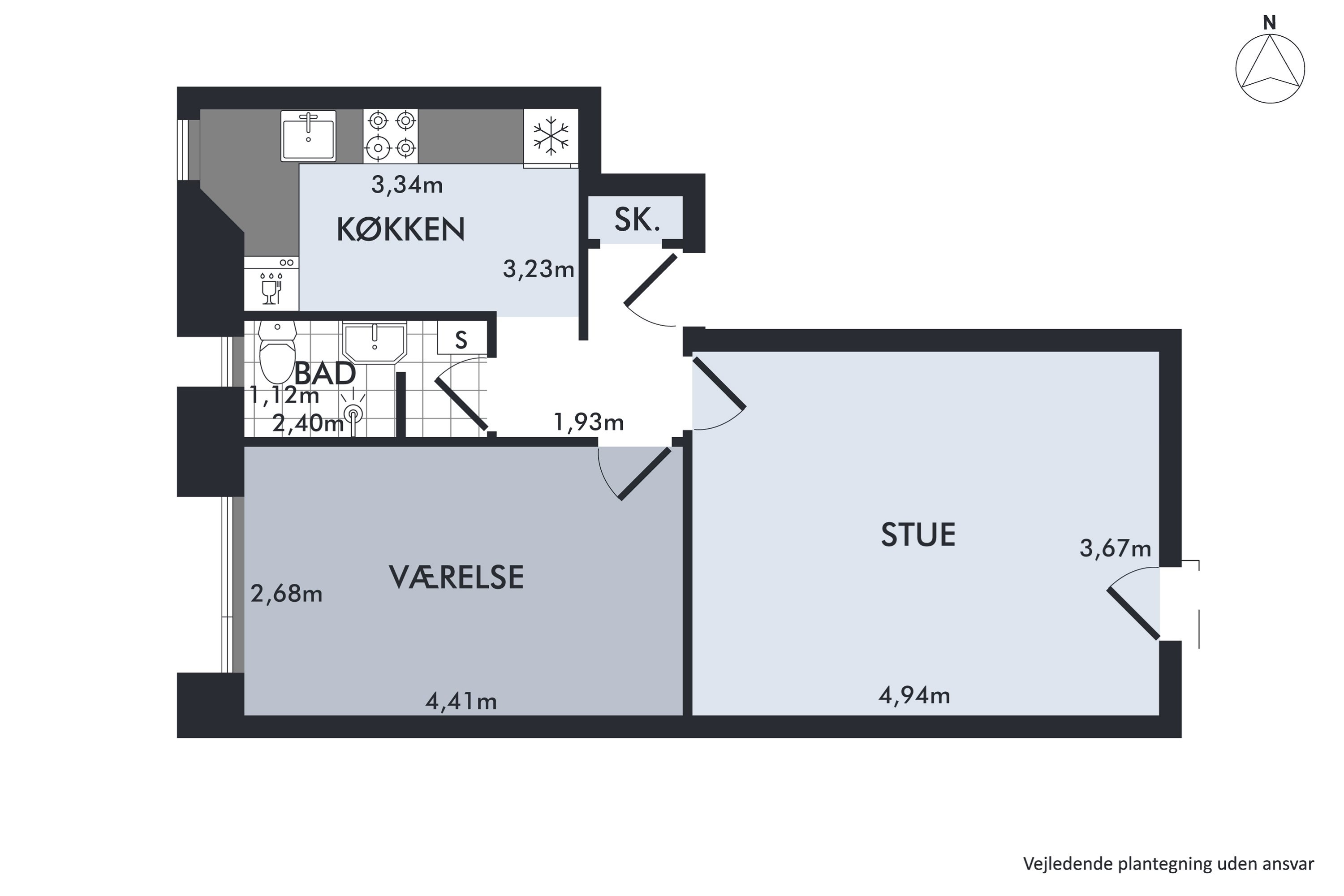 Lejligheden fremtræder lys og indbydende, og de 55 kvadratmeter fordeler sig over en klassisk og funktionel planløsning. Den byder nemlig på en entré, et rummeligt badeværelse med bruseplads og udluftningsvindue, et tidløst køkken med god bord- og skabsplads, et regulært soveværelse samt en lys og indretningsvenlig stue med plads til både sofa- og spiseafsnit. Som allerede nævnt er der altså tale om en velfungerende bolig, der er perfekt for enlige og par, uanset om I er unge, eller om ungerne for længst er fløjet fra reden.