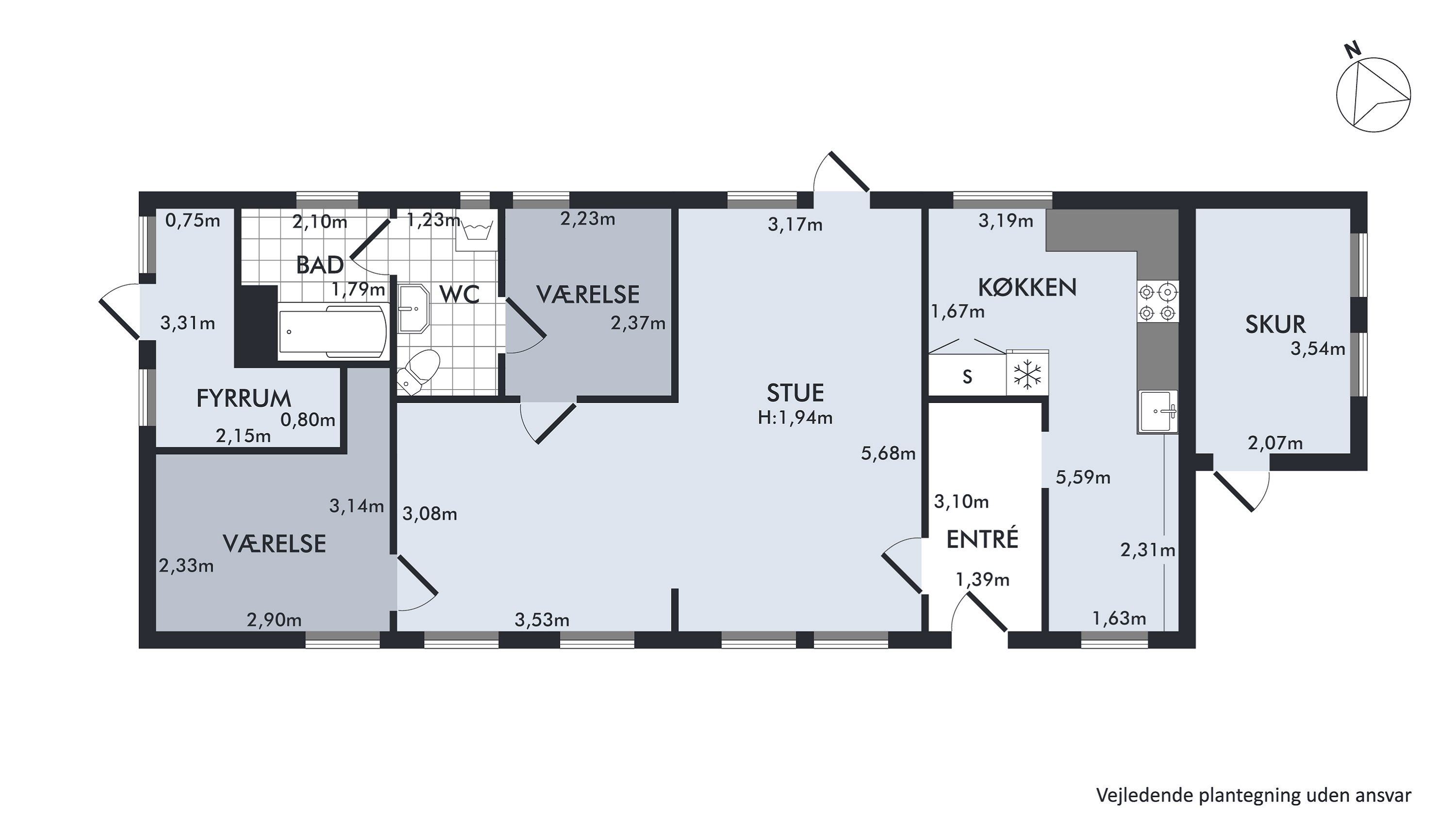 Derover vil knap et kvarters kørsel gennem de omkringliggende marker bane vej til Næstveds inderste, så I kommer aldrig til at mangle noget i hverdagen.Nærmer vi os adressen, mødes I af bindingsværk og stråtag - et charmerende syn, må man sige. I mere end 200 år har ejendommen haft hjemme lige netop hér, hvorfor huset fyldes af sjæl fra en anden tid. En indkørsel leder op forbi det fine ydre, og med 935 m² at gøre godt med udendørs kan I ligeledes kaste jer ud i et haveprojekt eller to, mens skuret sørger for praktisk opbevaringsplads.Boligkvadratmeter er der lige præcis 100 af, og de står klar til at blive sat i stand fra top til tå. Fulde af gode visioner og store boligdrømme kan I altså give den fuld gas med at ordne gulve, male vægge, skifte ud og tilføre nyt, indtil indretningen er helt, som I vil have den. Til start modtages I af en entré, og planløsningen fortsætter ind til to værelser, et badeværelse, et gæstetoilet med vaskefaciliteter, et fyrrum samt et køkken, hvor I oplagt kan oprette en hyggelig spisekrog. Boligarealet fuldendes af en stor stue, der giver ideelle betingelser for at etablere både et sofaområde og en spiseafdeling.