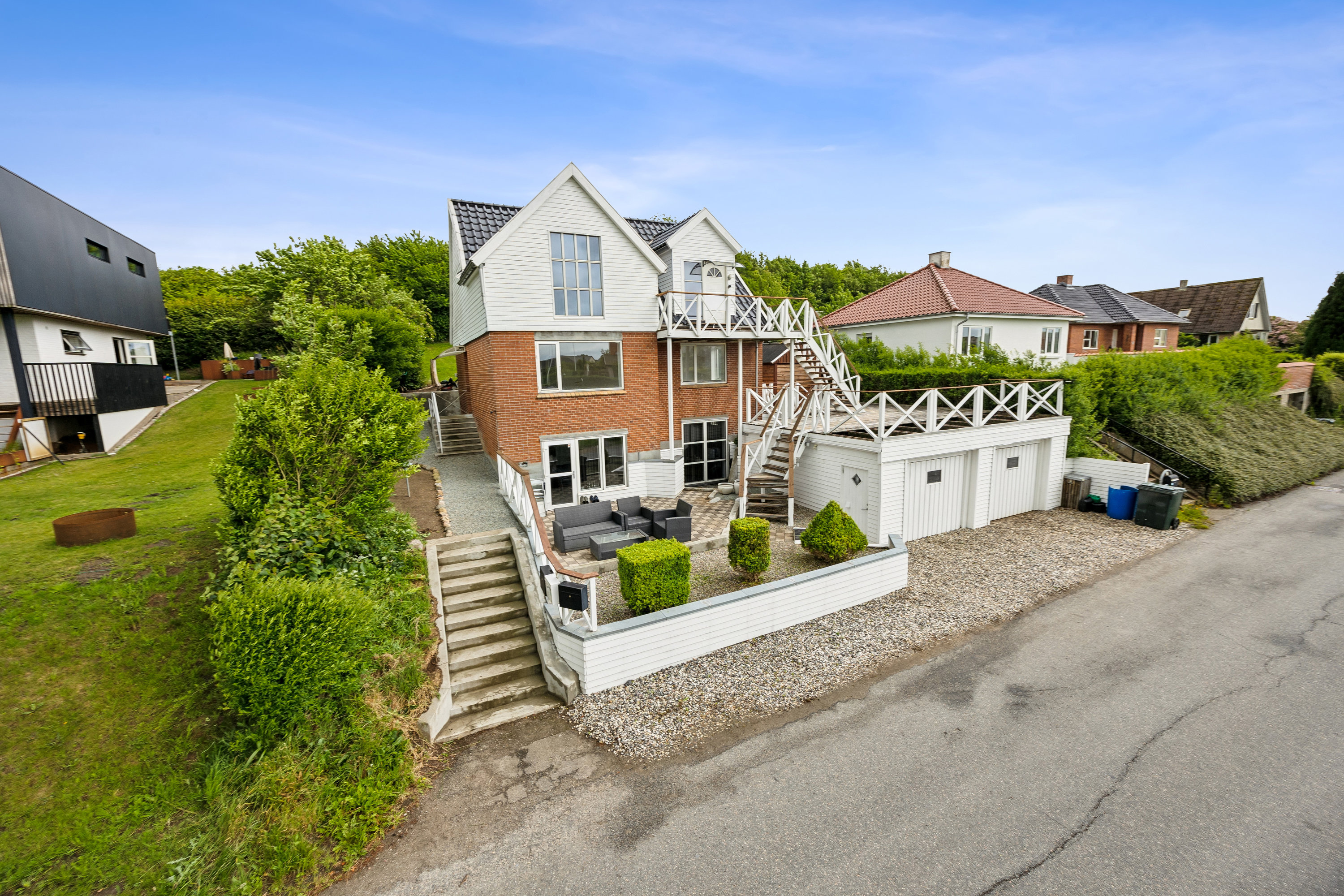 Udenfor forsynes I med en have og terrasser, der fordeler sig over flere niveauer. Og ligesom med de indre rammer, er der også her mange muligheder for, at bedsteforældre og børnebørn kan nyde tilværelsen sammen, at I kan skabe nogle indbydende fællesarealer til glæde for flere familier, eller at I kan indrette skønne opholdszoner til jer selv. Imens finder bilerne eller hobbyprojekterne deres rette plads i den dobbelte garage.