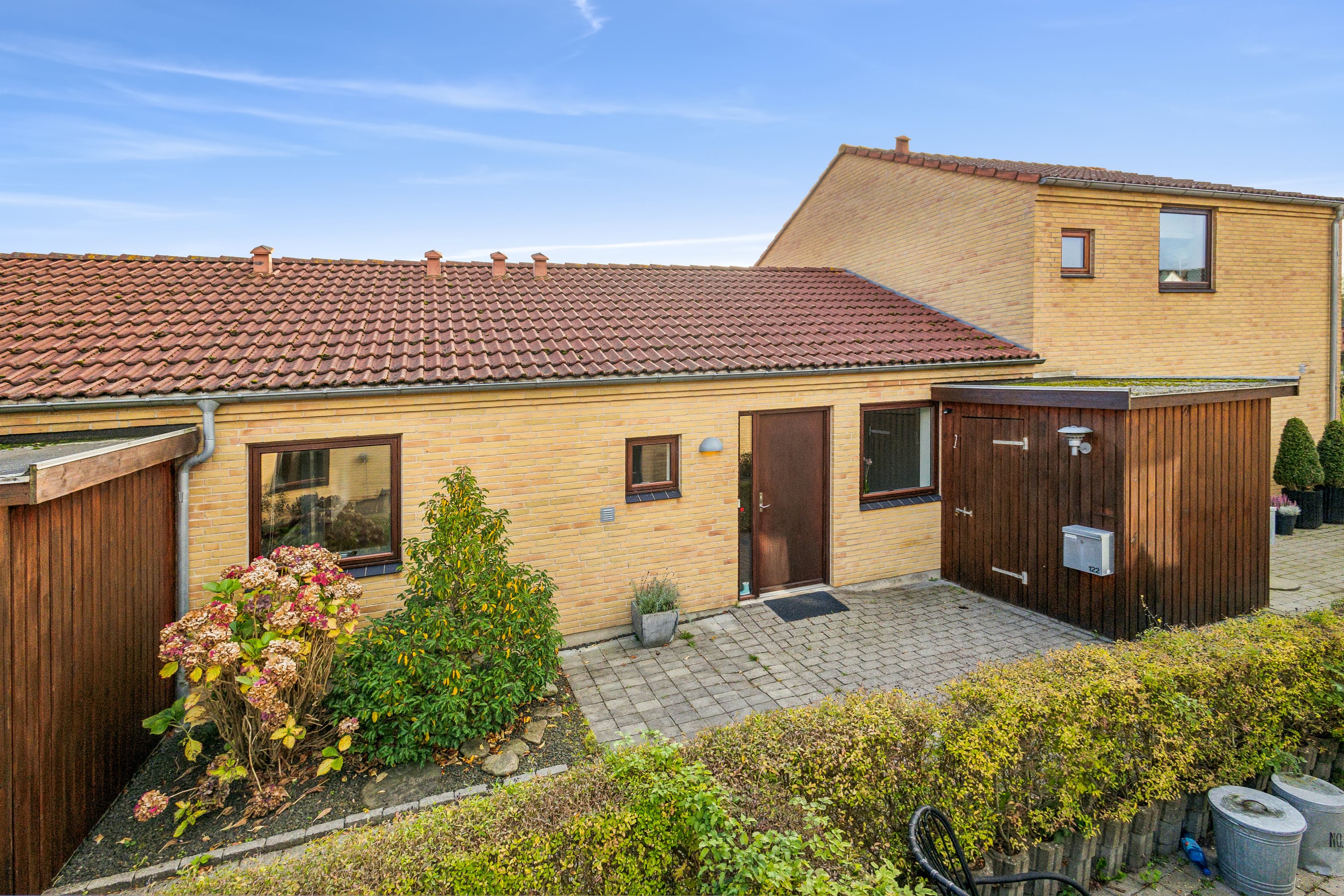Rækkehusene, der blev opført i 2001, tager sig flot ud med en facade af gule mursten og rødt tegltag. I flytter ind i nummer 122, som møder jer med en nydelig forhave med blomsterbed, fliser og et redskabsskur. Fra stuen er der adgang til en lukket baghave, som ikke kræver det store vedligehold; den er nemlig belagt med fliser, så I får et dejligt stort areal, hvor I kan nyde solen i helt private rammer.