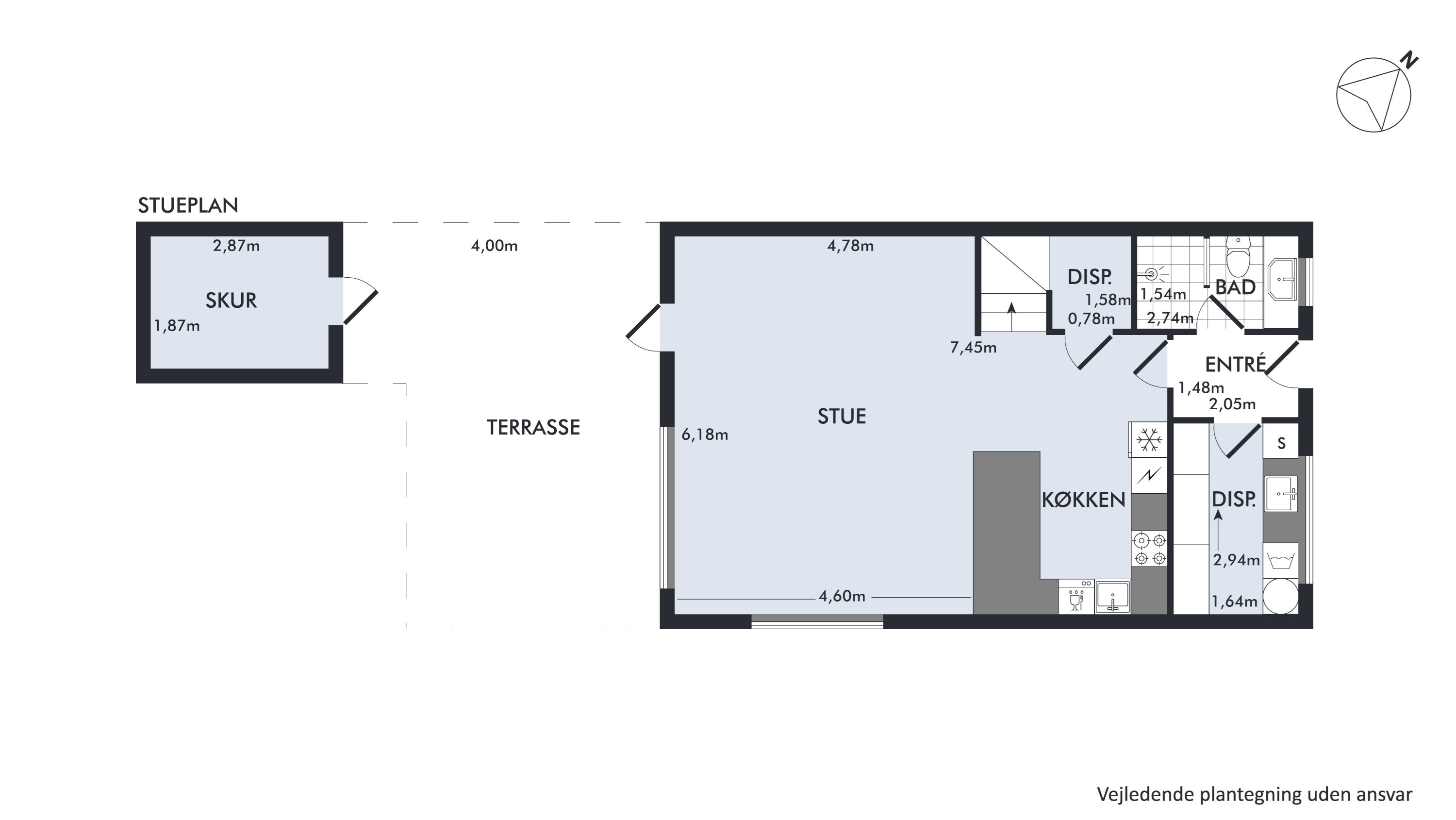 I vil hurtigt forelske jer i de rum, I kommer til at råde over: en entré, en stor stue i åben forbindelse til det flotte køkken, et bryggers, tre gode værelser og to rummelige badeværelser, ét på hver etage. Der er åbent tilkip, som giver et smukt lysindfald, som får hele boligen til at stråle. Haven erorienteret mod syd og vest. I kan altså følge solen fra morgenkaffen skal indtages til aftensmaden bliver stillet på bordet. Med i købet hører også en nyopsat pergola, som kan skygge, hvis man ønsker en smule skygge for solen.