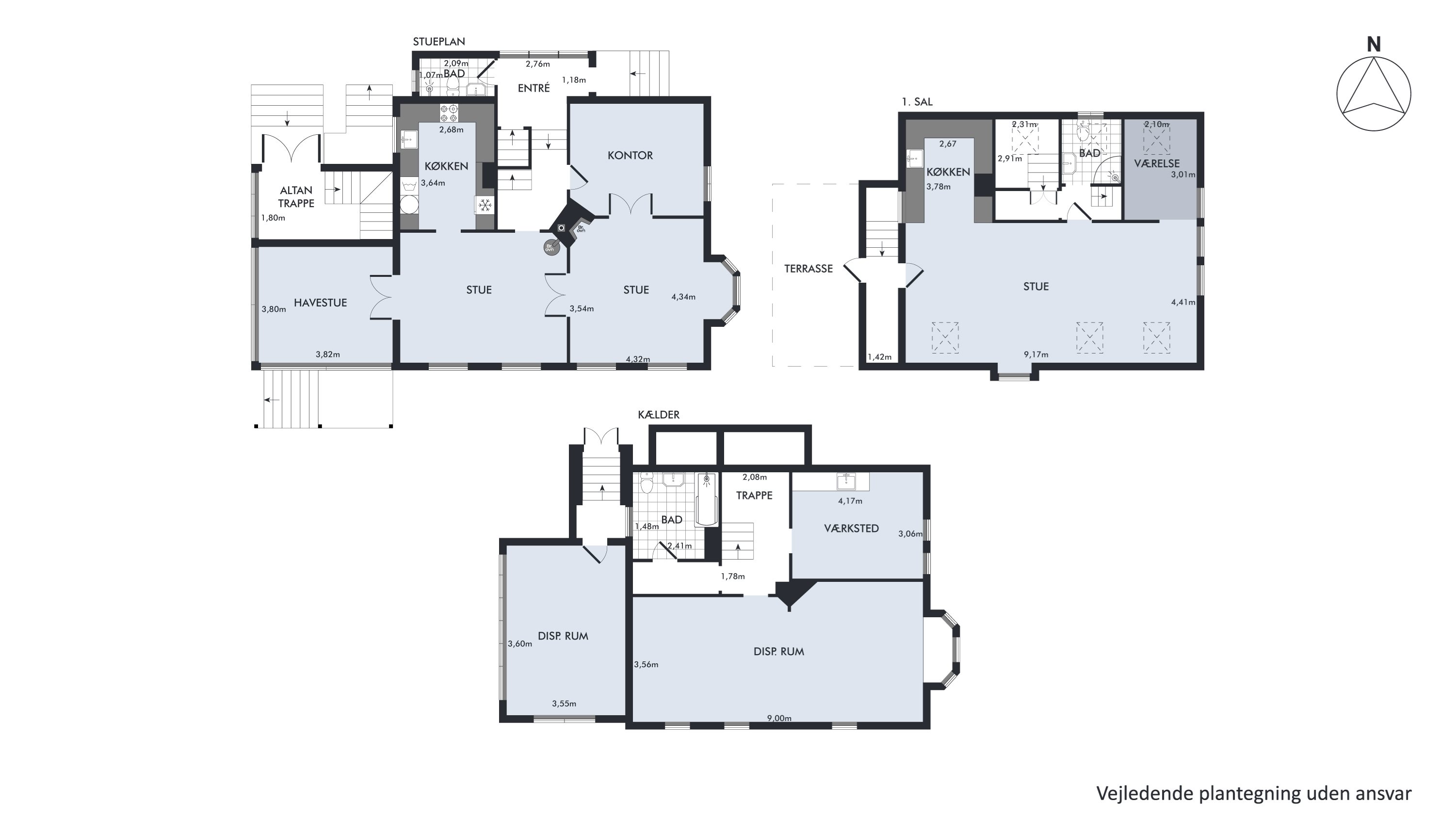 Ejendommen er opført i 1903, og I kan stadig fornemme charmen indendørs med stuklofter, fyldningsdøre og store vinduespartier. I stueetagen byder planløsningen på en entré, et funktionelt køkken og tre stuer en suite med brændeovn, pejs og videre afsæt til en hyggelig, vestvendt havestue. Førstesalen rummer et badeværelse, et soveværelse og et stort, lyst opholdsrum med køkken og plads til spise- og dagligstue ud i ét. Kælderen afrunder villaen med endnu et badeværelse og diverse disponible rum, og der er altså tale om et hus med mange muligheder både hvad angår planløsning og anvendelse. Huset er udstyret med solceller til 4 KW samt saltvandsbatterier til opladning, og desuden en oplader til elbil.