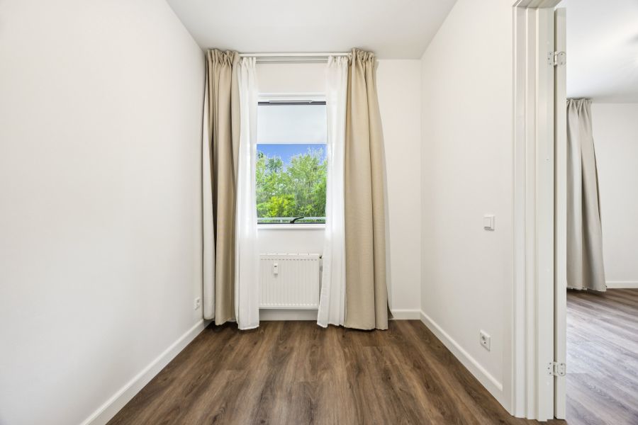 Inden for stationsbyens rammer flytter du til dejlige og hyggelige Glumsøparken; her er der gode forhold for beboere i alle aldre med store, grønne fællesområder, legepladser og lettilgængelig parkering. Du skal rette blikket mod en lejlighed i stueplan, som byder på nem tilgang til hoveddøren, men uden at gå på kompromis med privatlivet. Her får du også en dejlig, syd- og vestvendt altan, som bliver dit eget lille, grønne åndehul i hverdagen.