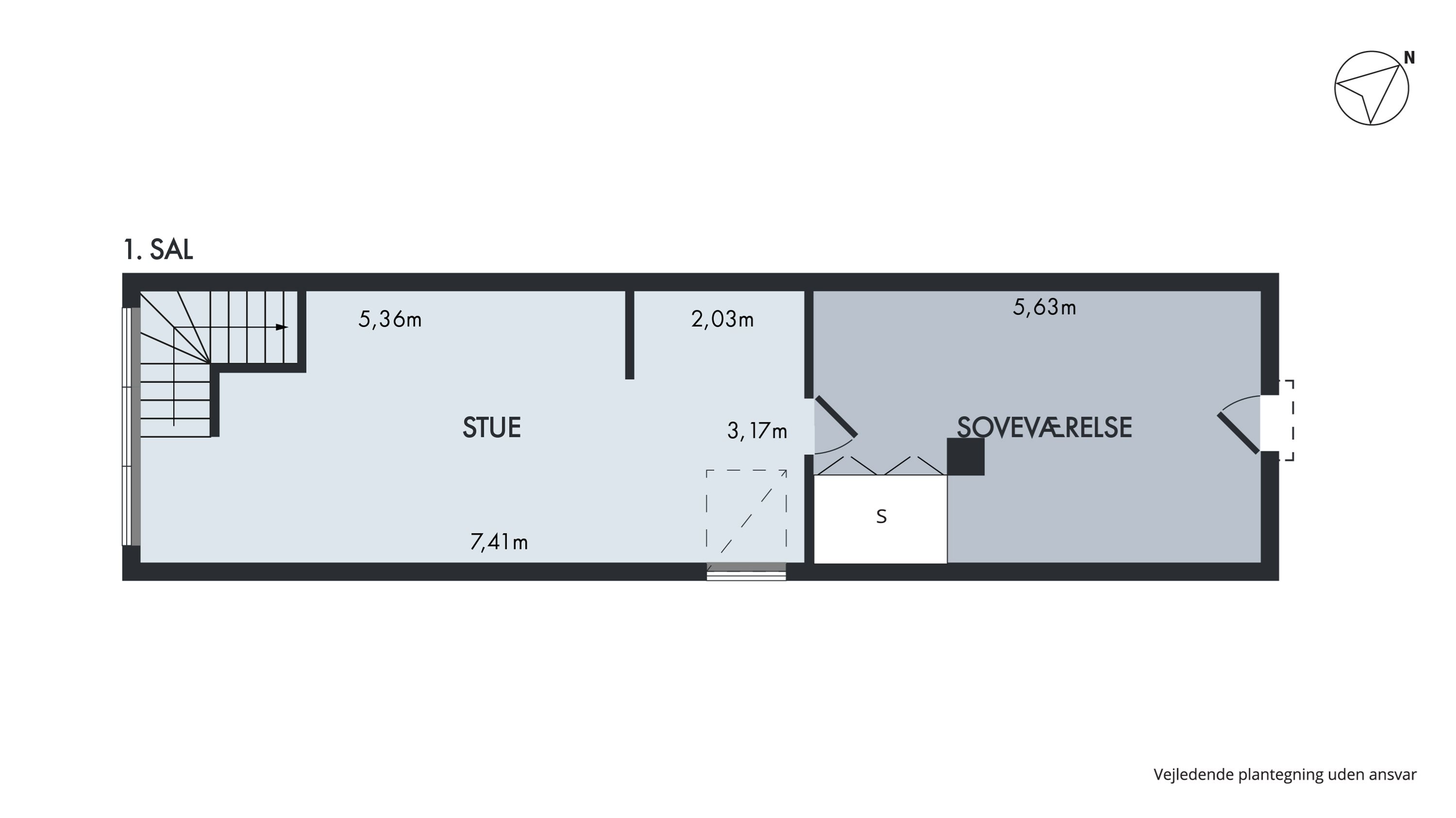 Husets 62 m2 fordeler sig over stueetage og førstesal. Detaljer såsom blotlagte bjælker giver jer mulighed for at beholde husets autentiske charme samtidig med, at I kan sætte jeres eget præg på boligen. Jeres nye hjem er udstyret med to indgangspartier i henholdsvis bryggerset og entréen. Derudover byder stueetagen på et badeværelse med brus, et regulært værelse, en stue samt et køkken. I stuen er der plads til sofaen og samværet, mens køkkenet er udstyret med integrerede hvidevarer og plads til spisebordet. Førstesalen råder over endnu en stue, der også kan indrettes som værelse, samt et soveværelse med indbygget skabsplads.