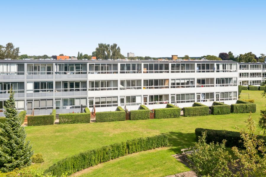 Du flytter ind i en bebyggelse bestående af klassiske 60’er-ejendomme, og ud mod vejen er der anlagt gode parkeringsmuligheder for beboerne, mens der bagtil - gemt væk fra gadebilledet - venter sol og grønne omgivelser. Her finder du nemlig de store, åbne fællesarealer, der giver dig plads til at samle vennerne til aftensmad under åben himmel.