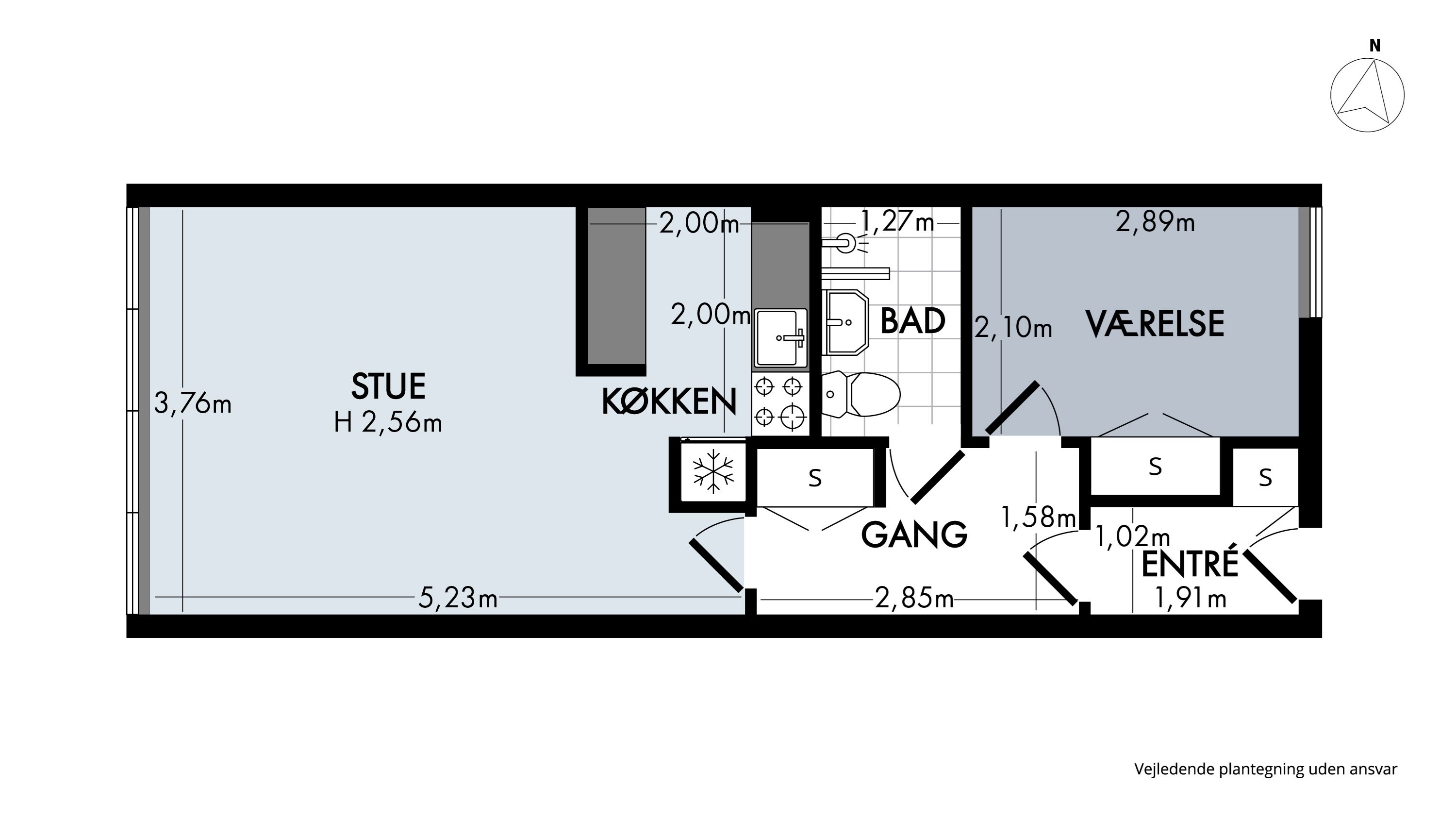 Lejligheden ligger højt og lyst, og den tilgås via en svalegang med udsigt over gårdmiljøet. Planløsningen byder først og fremmest på en entré med god opbevaringsplads, og herfra er der afsæt til et gangareal. Boligen rummer et hyggeligt soveværelse, et stort badeværelse med separat bruseniche og et vestvendt opholdsrum, hvor der er god plads til både sofa- og spiseafsnit, mens køkkenet er opført i et fint og tidløst design med god bord- og skabsplads.