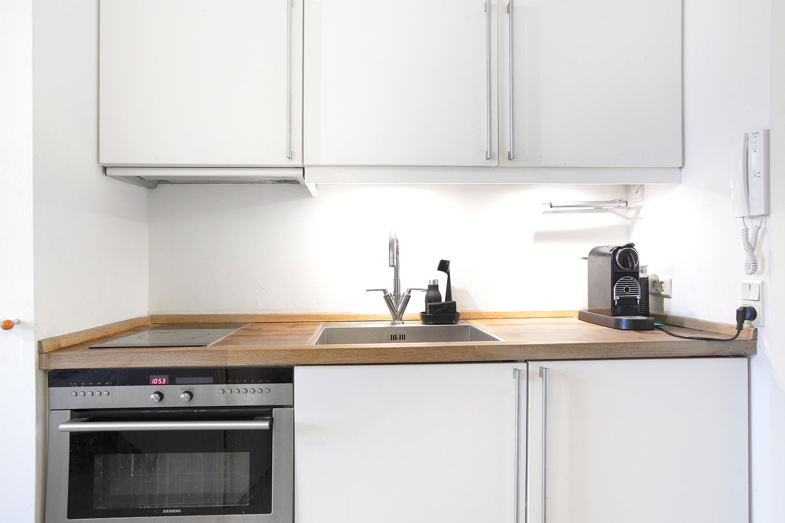 Heroppe går turen gennem en pæn og stilren bolig med lyse materialevalg. Der er ingen spildplads, men derimod et stort flisebadeværelse med separat brus og et nydeligt køkken, der åbner videre op til stuen. Sidstnævnte kan indrettes med såvel sengen som en spiseplads og måske et lille hjemmekontor. Prikken over i’et er det brede vinduesparti, der lader lyset strømme ind, mens det samtidig inviterer på udsigt over nærområdet.