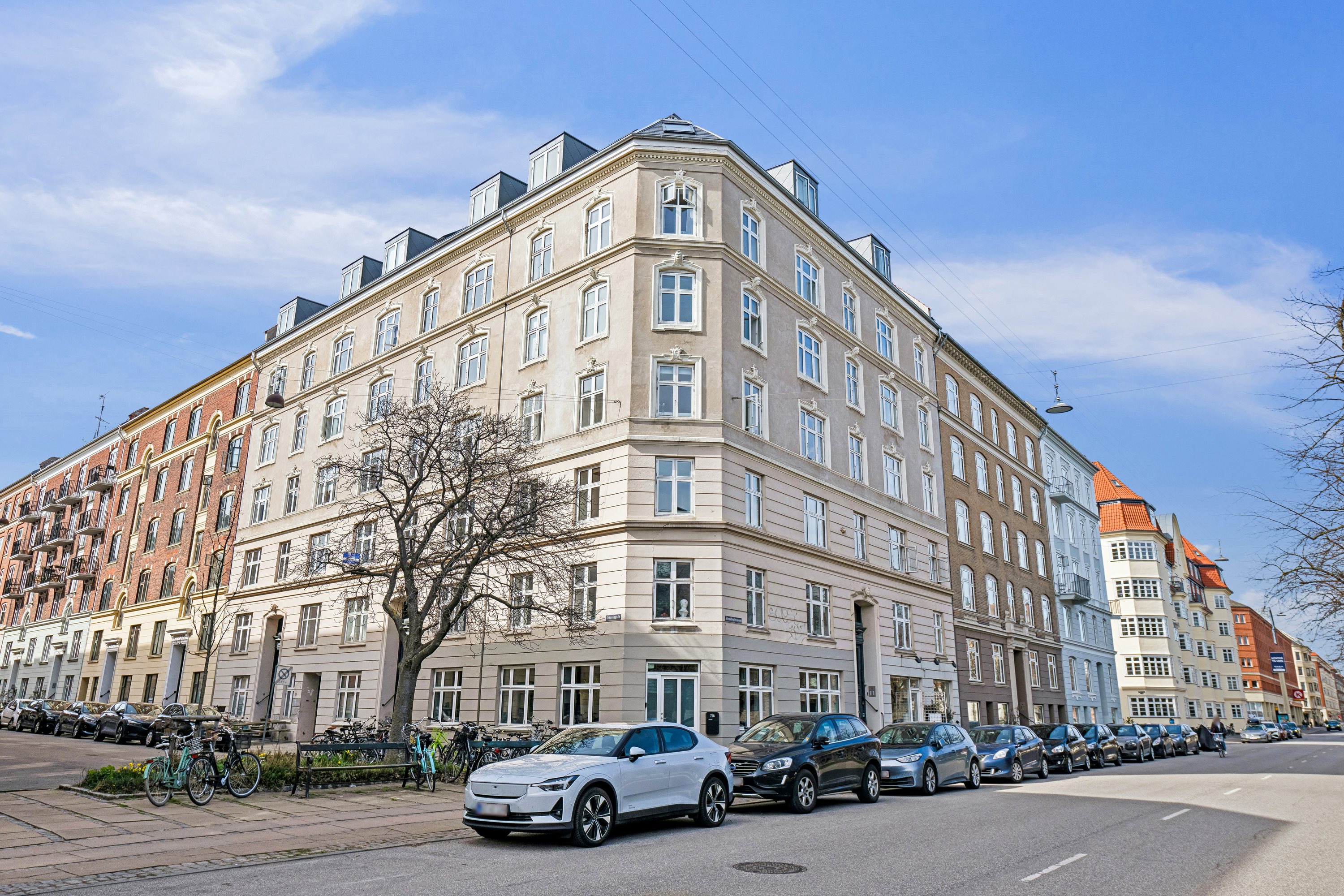 Du får hjemme i en elegant og klassisk ejendom, der næsten ligger som nabo til Strandboulevarden. På få minutter kan du gå til både Århusgade og Nordre Frihavnsgades mange charmerende caféer, de lokale butikker samt bagværk i højeste kvalitet. Trænger du til frisk luft, så kan du enten følge de hyggelige gader hen til Fælledparkens åbne områder, eller du kan smutte ned til Nordhavn Bassinet og tage en dyp i havnebadet eller blot nyde udsigten til vandet. Transporten til andre dele af København bliver også ligetil, for på fem minutter kan du gå til Nordhavn Station, hvorfra metroen og S-toget nemt forbinder dig med resten af hovedstaden. Foretrækker du cyklen, så kan du følge stierne langs Søerne og på under et kvarter stå midt i Indre By.