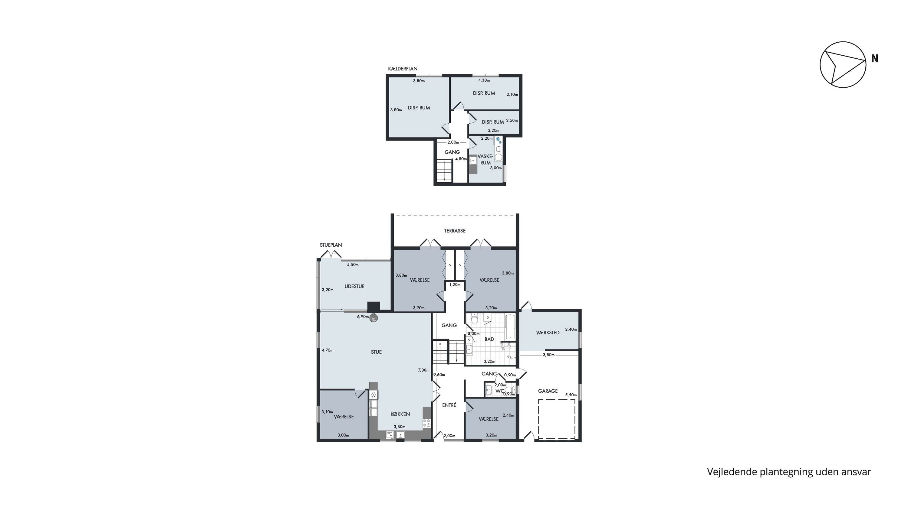 Boligens 139 kvadratmeter fordeler sig ud på fire værelser, et stort badeværelse, gæstetoilet og et flot og moderne køkken med åbent til stuen og den dejlige udestue. Den charmerende 70'er-stil går igen flere steder i boligen. Stuen har for eksempel en karakteristisk murstensvæg, listeloft og en stor skydedør i glas med træfarvede vinduesrammer. Den atmosfæriske brændeovn bidrager også til den varme stemning. Udestuen ligger i forlængelse heraf og har både vinduer mod syd og vest, så I får et rum fyldt med sol og med udsigt til havens grønne miljø. Som en kontrast til de charmerende elementer er køkkenet opført med minimalistiske og moderne materialer, der blandt andet byder på hvide moduler, sorte vinduer og en mørk bordplade. Slutteligt er det værd at komme omkring kælderen, der giver jer 49 ekstra kvadratmeter fordelt på tre disponible rum og et praktisk vaskerum.