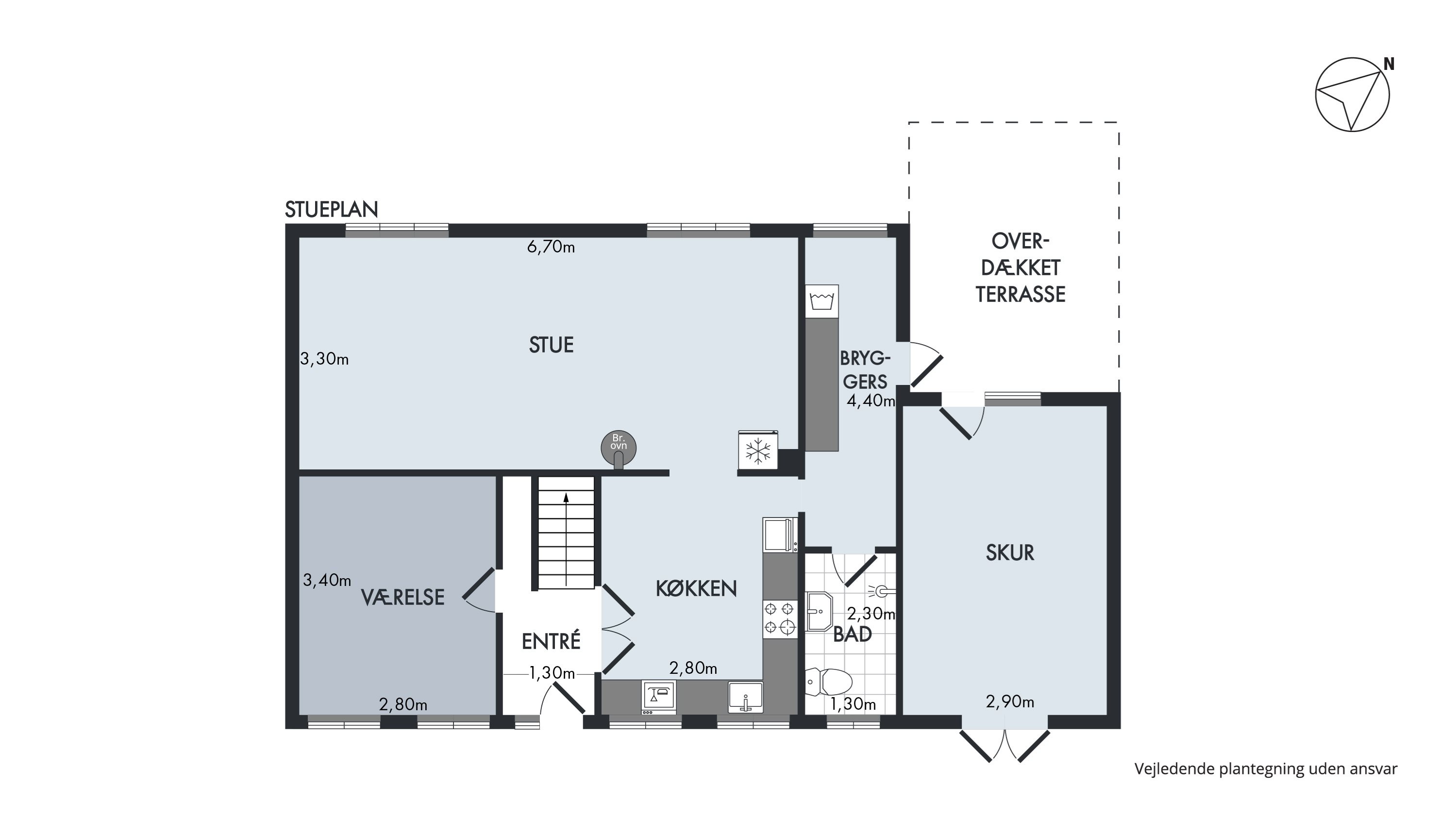 Bevæger I jer indenfor, kan I se frem til en entré med trappe til førstesalen, men inden I bevæger jer til husets øverste niveau, bør I starte med at udforske stueplan. Foruden et regulært soveværelse får I glæde af et funktionelt køkken med alt i hårde hvidevarer, et praktisk bryggers med vaskefaciliteter og et badeværelse med toilet og separat brus. Stuen fungerer som et naturligt samlingspunkt, og I kan rykke tæt sammen i de kolde måneder og varme jer foran brændeovnen med knitrende ild. Førstesalen tager jer med op til en opholdsstue med udsigt over naturen, alt imens der ligger et værelse på hver side heraf med god senge- og skabsplads.