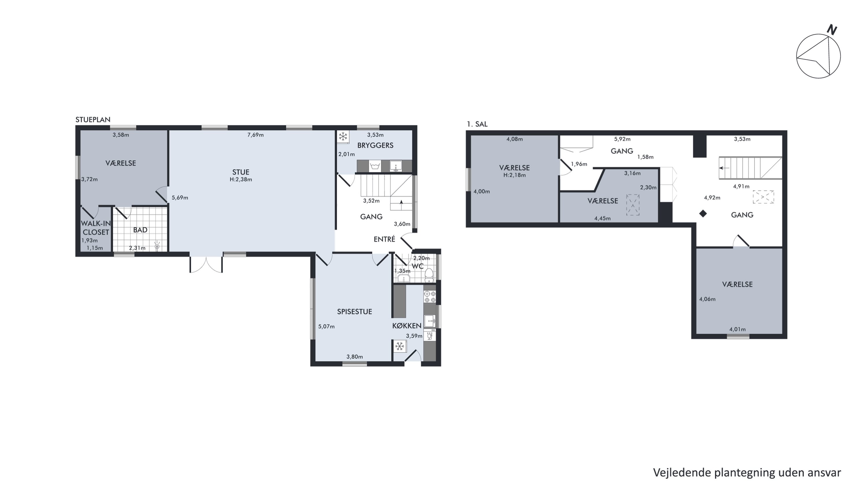 Rundt om i hjemmet gemmer potentialet sig bl.a. i de charmerende trægulve, der måske kan få nyt liv med en slibning? Trægulvet går også igen i den store, lyse stue, der udgør det ene af husets opholdsrum - det andet er køkken-alrummet, der, ligesom stuen, prydes af et skønt lysindfald. Derudover byder stueetagen også på et bryggers, et gæstetoilet, et stort soveværelse med walk-in og adgang til et rum, der atter kan blive til badeværelse, samt et walk-in.