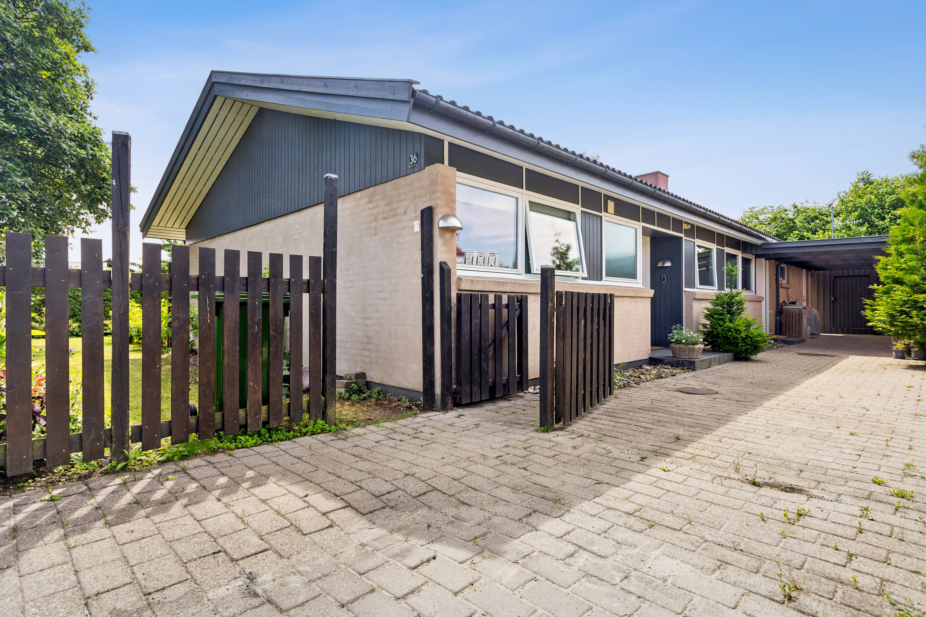Her får I 151 velindrettede kvadratmeter med en gennemtænkt planløsning og skønne, solrige udearealer, der gør hverdagen nem og weekenderne endnu bedre. Fra første øjeblik byder boligen på en flisebelagt indkørsel, stor carport og et redskabsskur, mens haven omkranser huset og skaber et grønt, ugeneret uderum med to sydvendte terrasser. Her kan solen nydes fra morgen til aften – ideelt til afslapning, børneleg og grillmiddage.