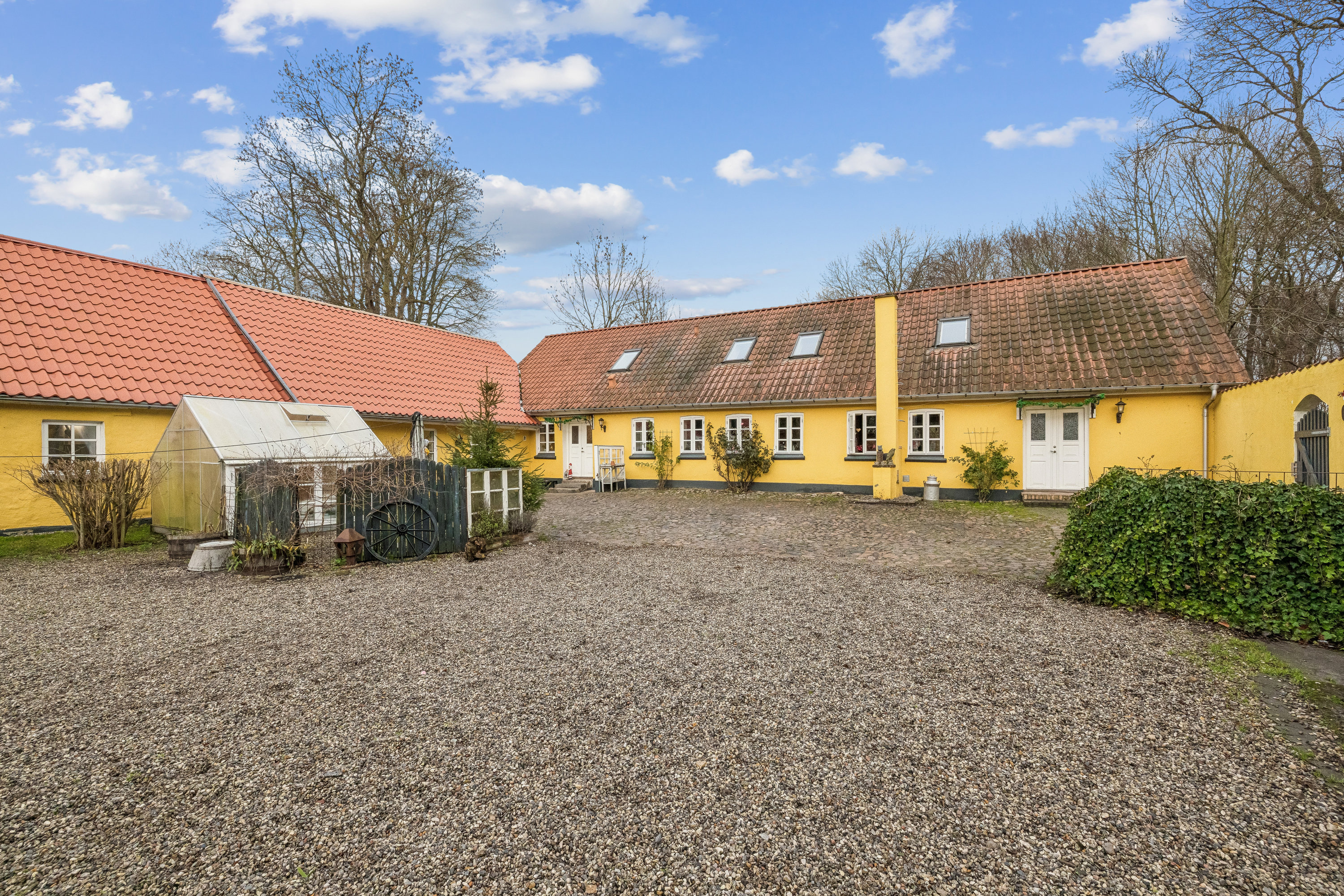 Det aflange stuehus omkranser sammen med udbygningerne en stor og grusbelagt gårdsplads. Ejendommen er oplagt for håndværkeren, entreprenøren eller hobbymennesket, for udbygningerne giver plads til lidt af hvert. Til et stort værksted til træarbejde eller motorcykler eller til eget lager, ølbrygning, en gårdbutik - mulighederne er mange. I får dertil også en hyggelig og privat have med pavillon.