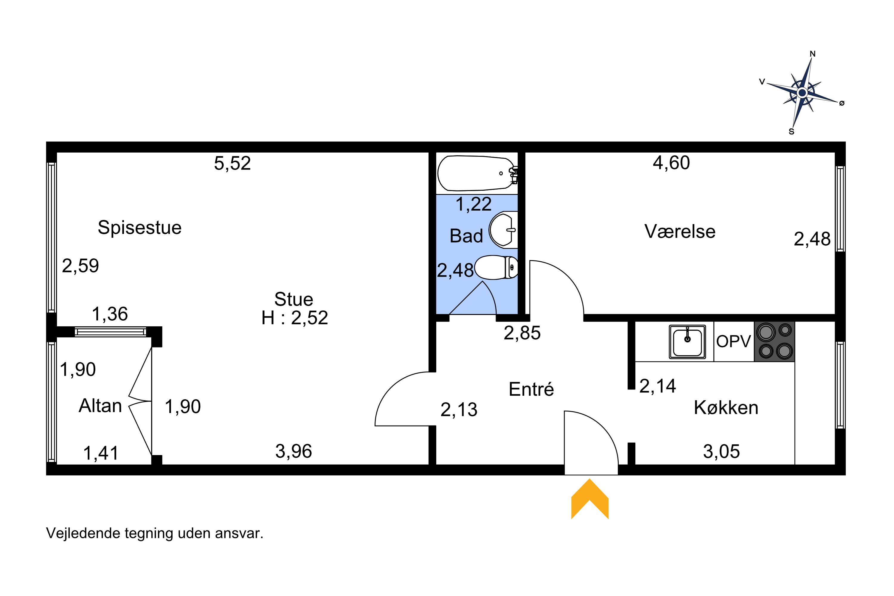 Med i købet følger en vestvendt altan med adgang fra det store leverum. Altanen er overdækket, hvilket giver mulighed for at nyde den friske luft uanset vejret, og her rammer solen i alle dagens bedste timer: fra middag til aften. Derudover kigger man lige ud i et grønt fællesareal, der indrammes af træer og høj hæk. Bag ved de grønne fællesarealer, har bebyggelsen sin egen parkeringsplads. Boligen fremstår i velholdt stand, og med en yderst fornuftig planløsning, med en rummelig stue, soveværelse, badeværelse og separat køkken.