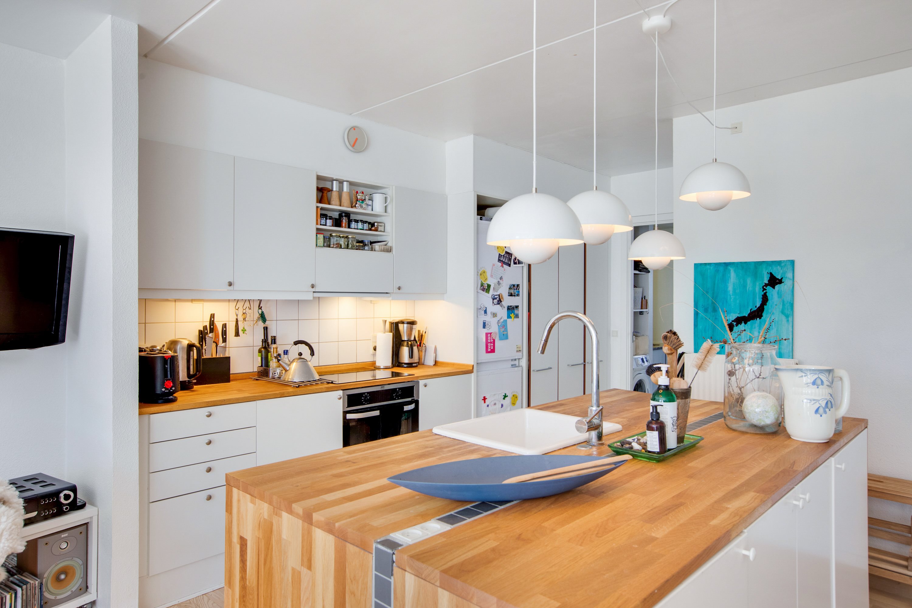 Lejligheden fordeler sig over et soveværelse, et badeværelse, et mindre gangareal med plads til opbevaring samt en stor stue, der er i åben forbindelse med køkkenet. Fra hoveddøren træder I ind i det åbne stuerum, hvor I, med det samme, kan komme af med overtøjet i smarte opbevaringsløsninger. Dette store leverum kan indrettes lige efter jeres behov med både spisebord og dejlige sofaer, mens køkkenet er opført med køkkenø, så der samtidig kan skabes et godt overblik over rummet; dette garanterer jer løbende samtaler under kokkereringen og helt generelt et godt flow i den travle hverdag. Køkkenet er derudover opført i et strømlinet og moderne design, der ikke mister nogen charme grundet de varme træmaterialer, der er brugt. Soveværelset er holdt i samme, rummelige og varme stil, der både giver en åben og behagelig fornemmelse, men også udnyttet til fulde gode skabe. Prikken over i’et for den nemme hverdag er helt klart badeværelset, der både præsenterer sig lyst og funktionelt, hvor I kan glæde jer over de kvalitetsrige vaskefaciliteter, den store, separate bruseniche og den optimale rummelighed.