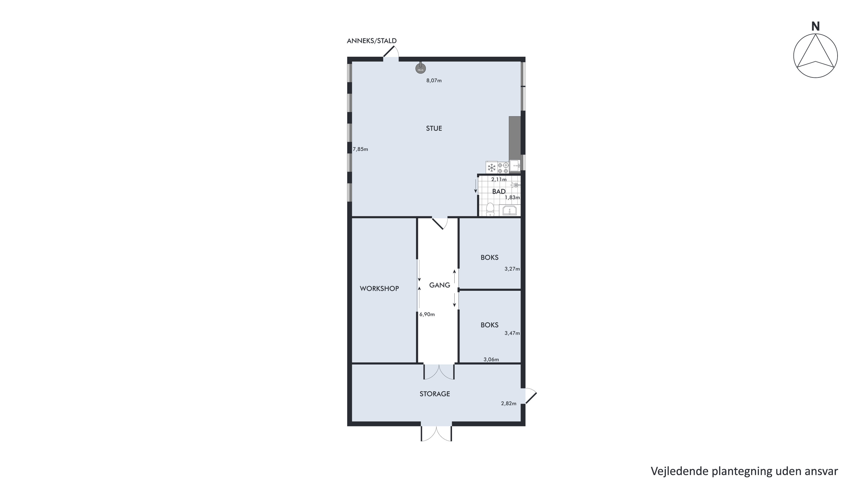 Til ejendommen hører desuden en stor gammel udbygning, som er udnyttet med stald og et anneks med plads til både opholdsstue, badeværelse, værksted og en hestestald.