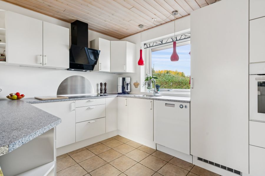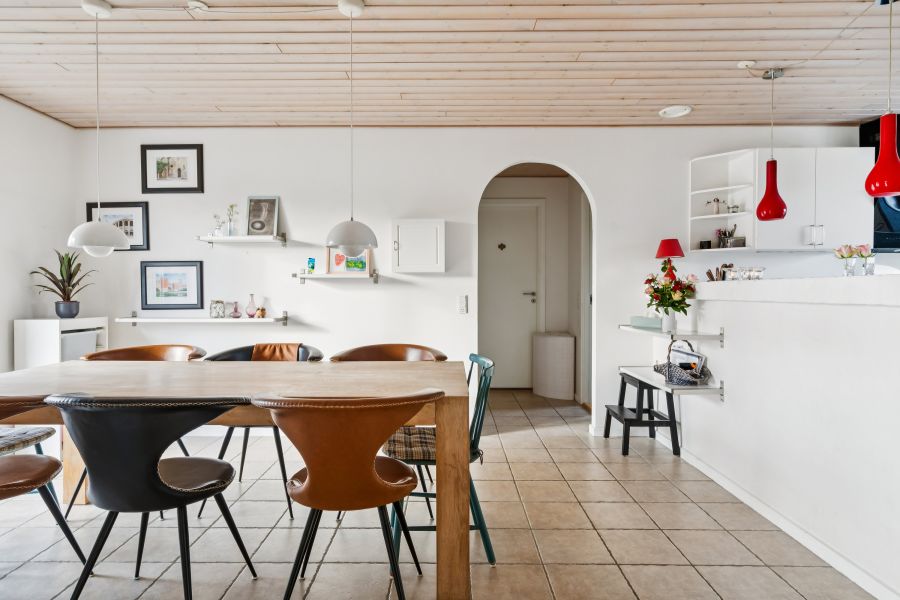 Indendørs byder boligen på 135 kvadratmeter i ét velindrettet plan, hvor pladsen er udnyttet til fulde. Husets ene ende giver jer en separat børneafdeling, hvor to værelser ligger side om side med et badeværelse; i modsatte ende får forældrene deres egen base med et soveværelse, et walk-through-closet og et badeværelse. Alt det bindes sammen af nogle skønne opholdsrum, nemlig køkken-alrummet og stuen med rigelig plads til familielivet og med fri passage til udelivet på terrassen. Et stort bryggers sætter en praktisk prik over i’et.