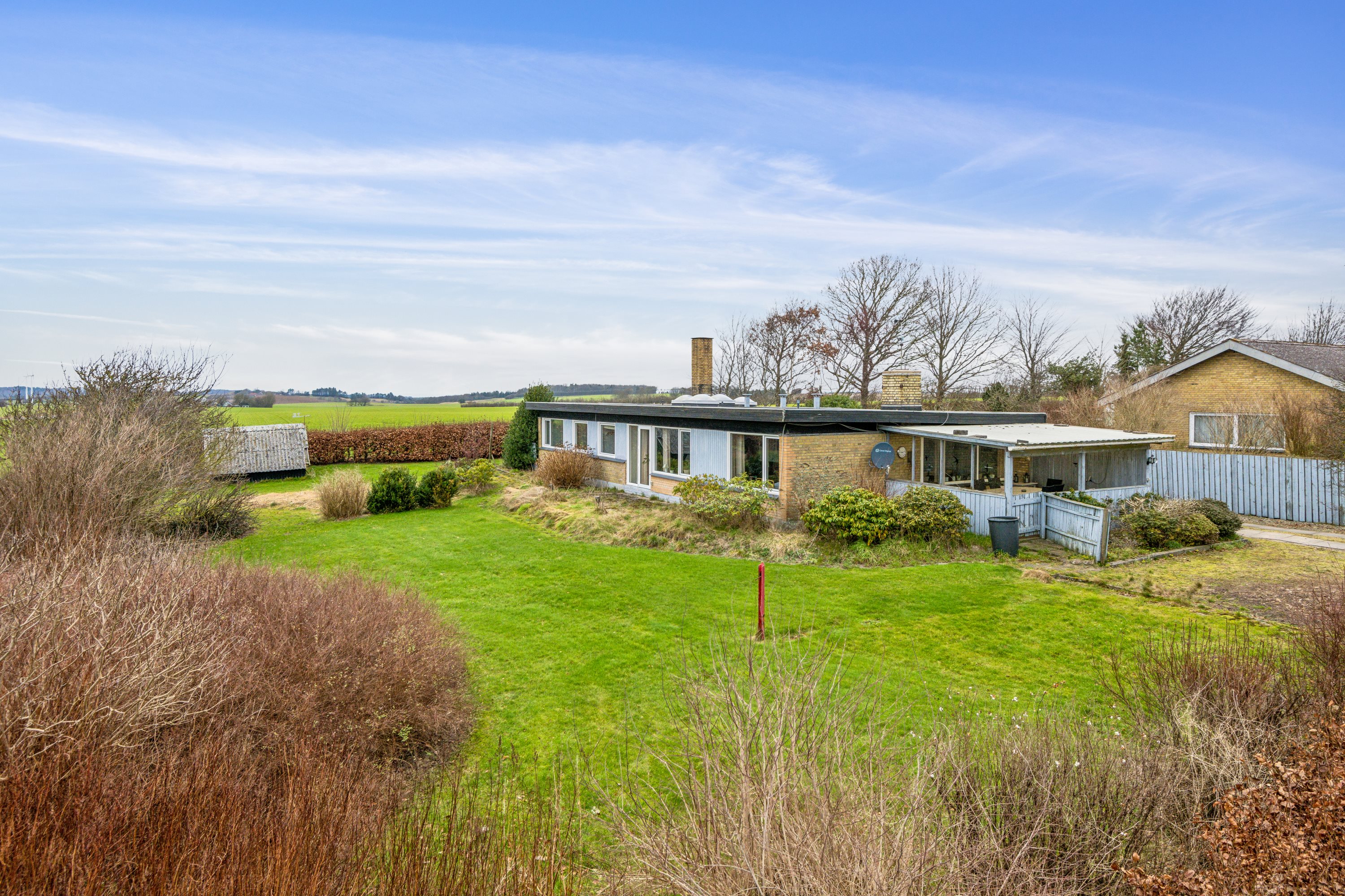 En indkørsel leder op til ejendommen, der placerer sig på en 1.200 kvm stor grund. Med fingrene begravet i mulden, mens børnene løber rundt på den grønne plæne, kan I lade blikket vandre over de åbne marker, som møder høje træer og blå himmel i horisonten. Her er plads nok til, at I endelig kan udleve drømmen om vildtvoksende blomster, gyngestativ, fodboldmål til de små og køkkenhaver, hvor I kan hente hjemmegroede grøntsager til middagsbordet.