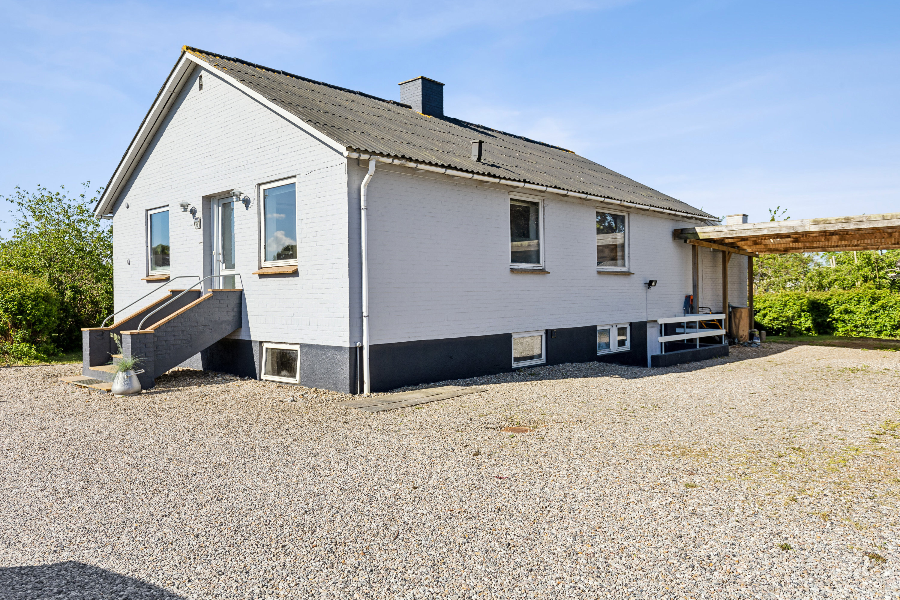 Villaen, som kan blive dit hjem, ligger på en lukket og rolig stikvej. Haven er stor, sydvendt og nem at holde, og selve huset står med en flot facade og en høj sokkel, som sikrer både stue- og kælderplan et godt lysindfald. Stueplanet giver dig 103 boligkvadratmeter foruden 22 kvm udestue, og i kælderplan får du 103 kvm til værksted, vasketøj og opbevaring.